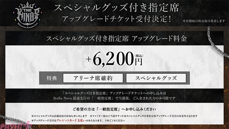アップグレード特典:アリーナ席確約、スペシャルグッズ