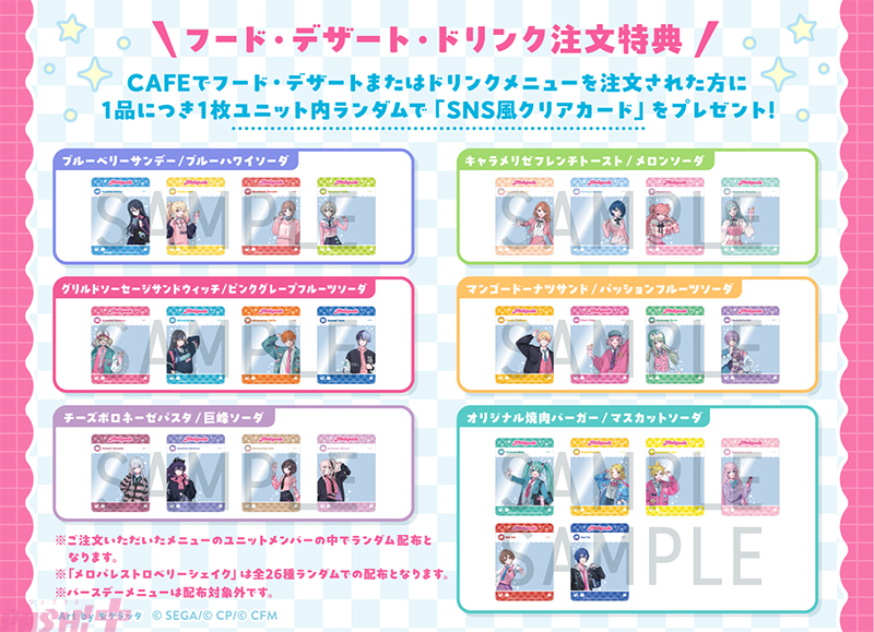 CAFEでフード・デザートまたはドリンクメニューをご注文された方に「SNS風クリアカード(ランダム26種)」を1品につき1枚ランダムでプレゼント。