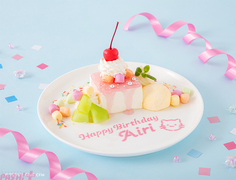 愛莉をイメージしたバースデープレート。特別なメッセージの入ったプレートとピーチ風味のソースをかけたチーズケーキで、一緒にお誕生日をお祝いしちゃおう!