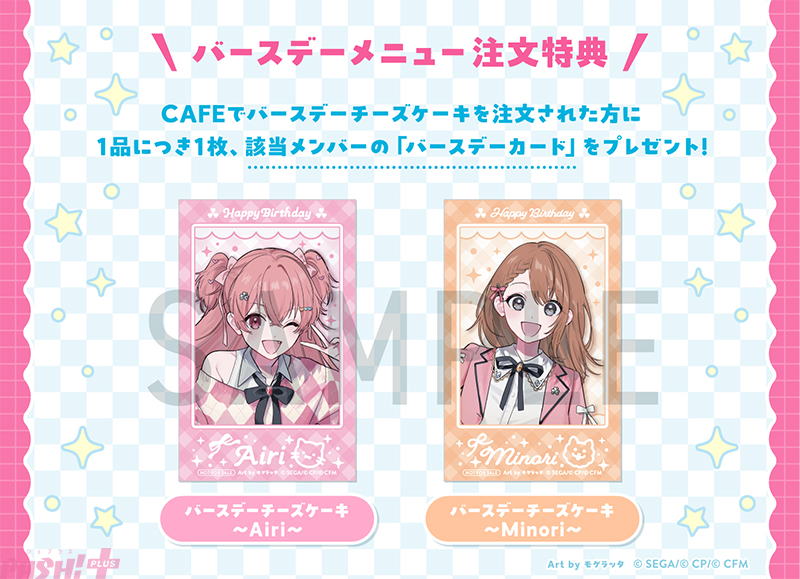 CAFEでバースデーチーズケーキをご注文された方に1品につき1枚、該当メンバーの「バースデーカード」をプレゼント。
