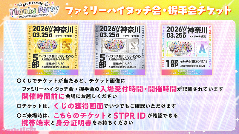 参加方法:『STPR Family ThanksParty!! ハイタッチ&握手会 in Kアリーナ横浜』特設サイトよりアクセスし、くじに参加