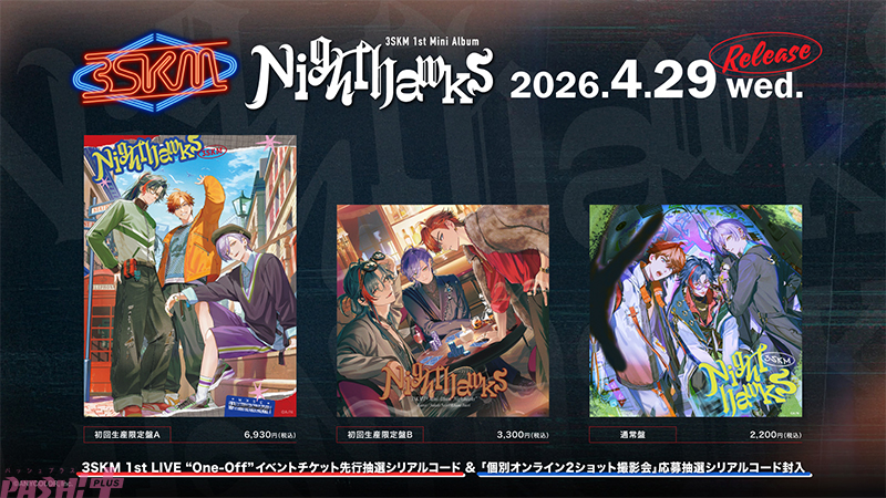 にじさんじ所属VTuber「北見遊征」「魁星」「榊ネス」のユニット「3SKM」。2024年3月12日(火)のデビューから3年目、待望の初リアルライブが開催決定! さらに2026年4月29日(水)発売のCD商品「Nighthawks」に本公演の先行抽選シリアルコードが封入されることも決定し、CD発売同日よりシリアル先行抽選の受付もスタートとなります。