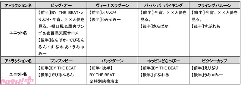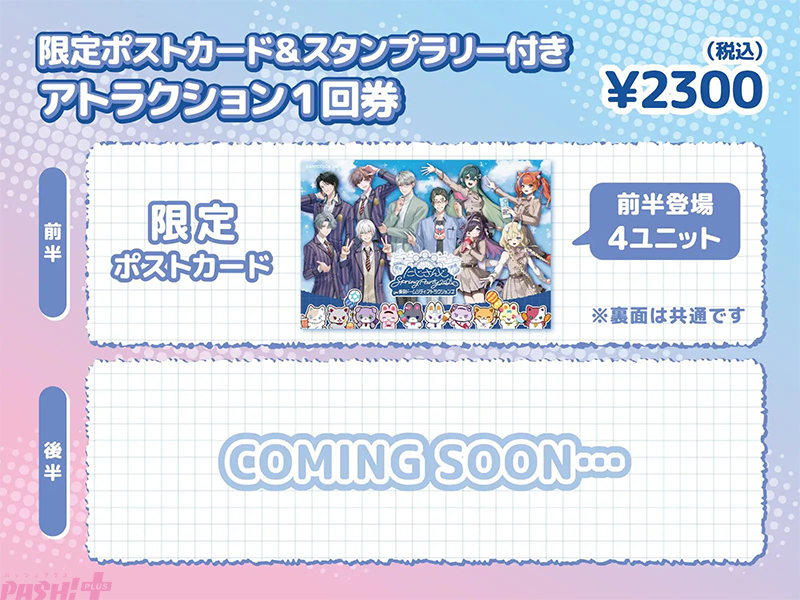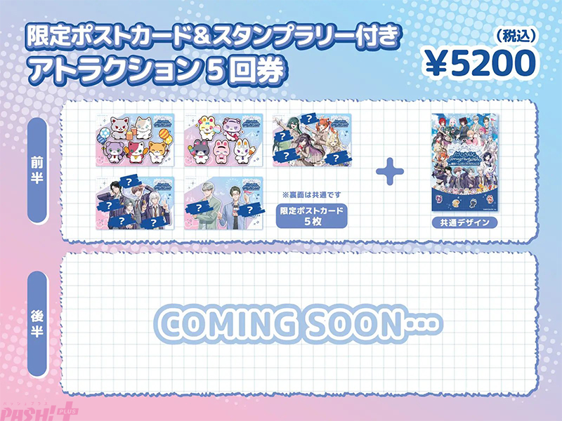 ※アトラクション1回券の限定ポストカードは前後半の各期間に登場するユニットの全員集合デザイン(1枚)です。複製手書きメッセージは付きません。