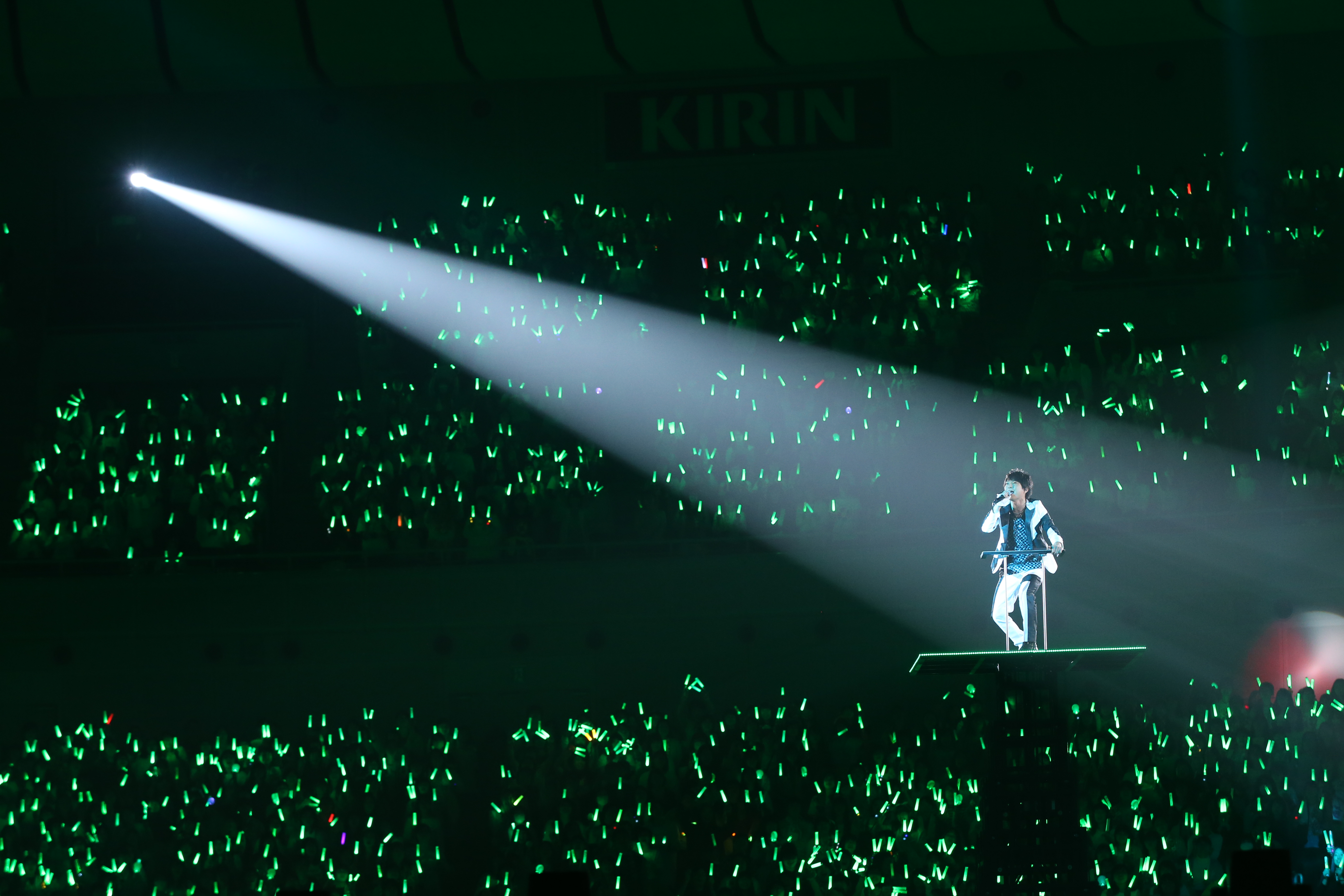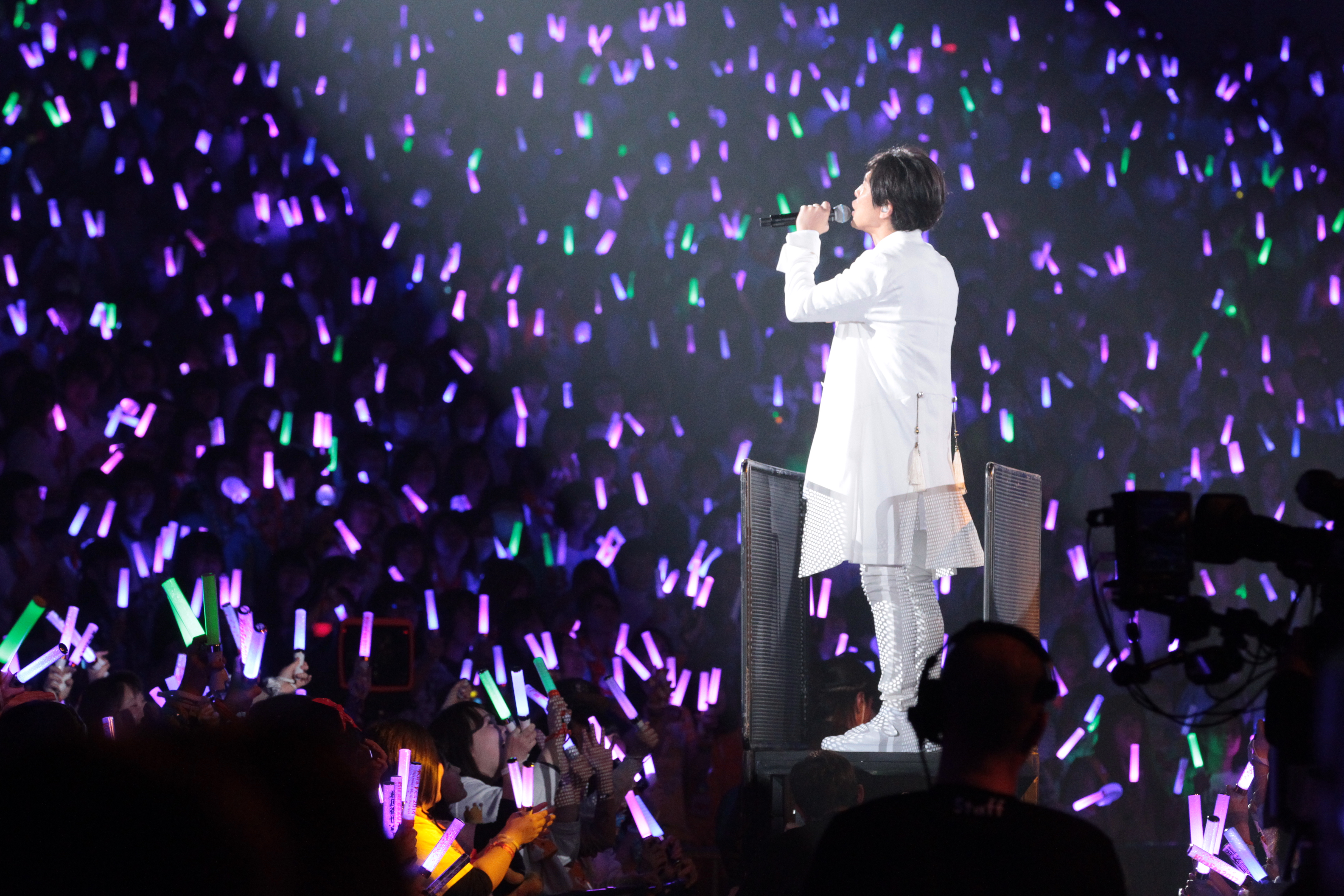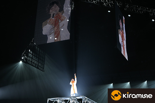 次に登場したのは、純白の衣装に身を包んだ神谷浩史さん。その瞬間から会場は神谷さんのメンバーカラーである紫一色のサイリウムに包まれ、最新アルバム「Theater」より「影もまた真なり」をしっとり歌い上げます。続いては2009年のデビューアルバムより「バジル」を、トロッコで客席の間近を通過しながら披露。サービス精神満点かつ、神谷さんのアーティストとしての歴史も感じられる一幕となりました。