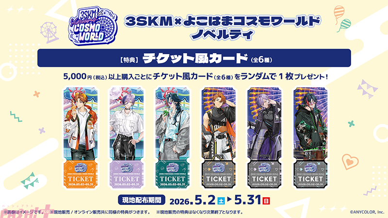 【にじさんじ】北見遊征、魁星、榊ネスの「3SKM」と「よこはまコスモワールド」が初コラボ決定! 新規撮り下ろしビジュアルをあしらった園内施策やグッズやプライズが登場