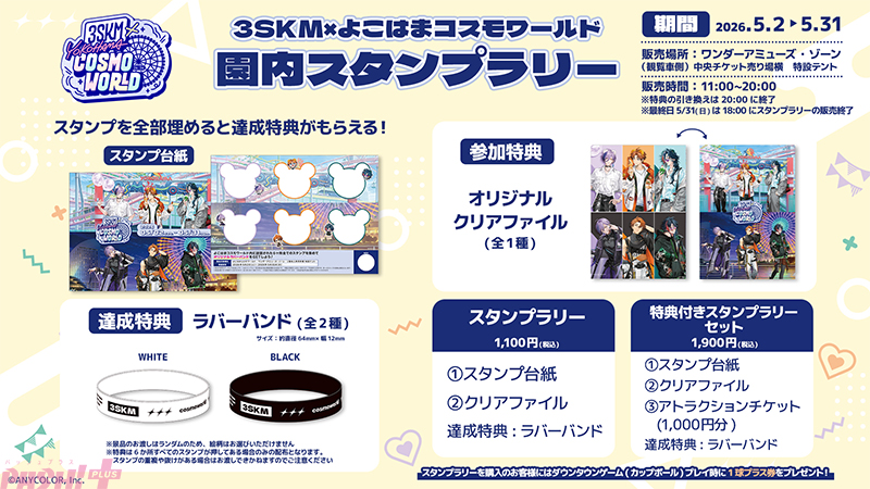 サイバーエージェントは、VTuberグループ「にじさんじ」所属の男性ユニット「3SKM(スリーエスケーエム)」と都市型立体遊園地「よこはまコスモワールド」のコラボレーションキャンペーンを、2026年5月2日(土)より開催します。