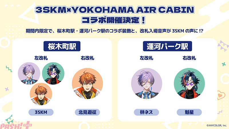 都市型ロープウェイ「YOKOHAMA AIR CABIN」では、本キャンペーンに合わせて特別連動企画を実施します。駅舎内での特別装飾に加え、改札通過時の音声が期間内限定で「3SKM」特別仕様に変わります。