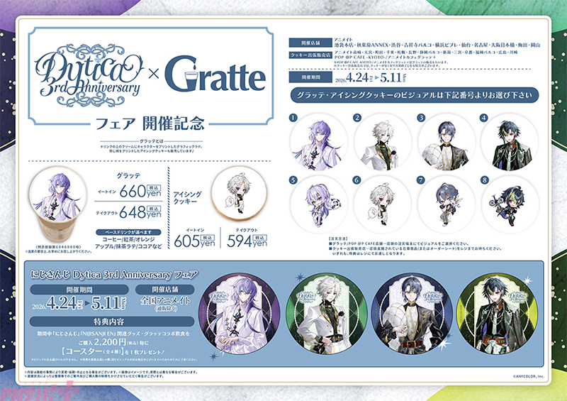 【にじさんじ】Dyticaの撮りおろしグッズ販売やグラッテコラボなど展開! 「にじさんじ Dytica 3rd Anniversary フェア」が全国アニメイトで開催
