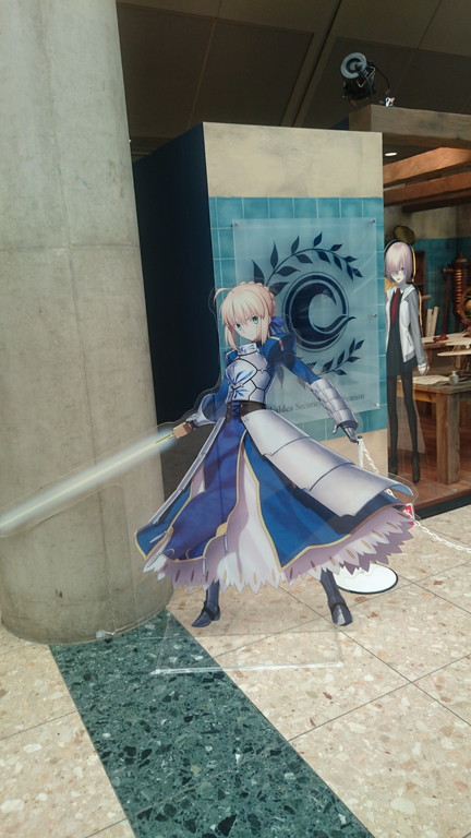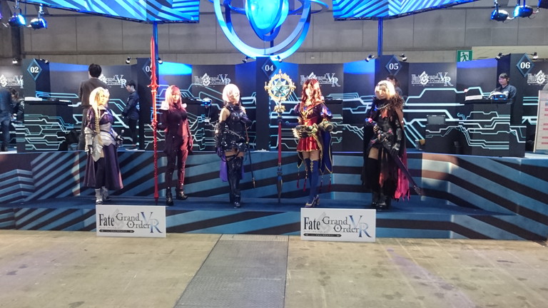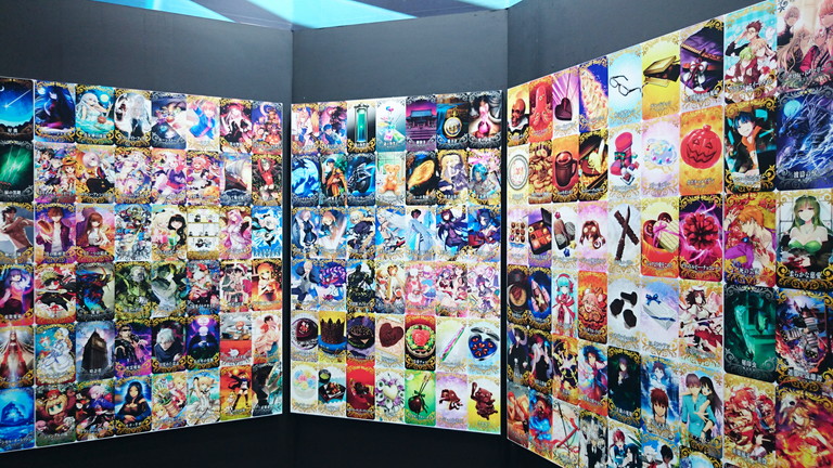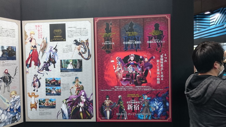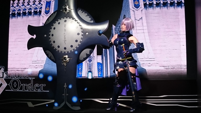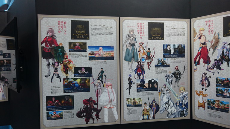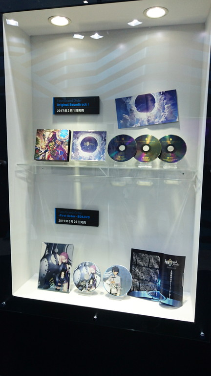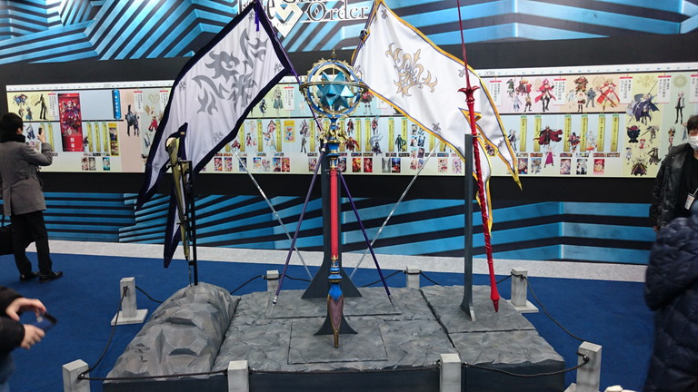 ブースでは、マシュ・キリエライトの宝具(実寸サイズ)を使った立体映像演出コーナー、ゲイ・ボルク・オルタナティブほか現物大宝具の展示、11騎のサーヴァント等身大スタンディの展示、制作資料展示、オリジナルグッズが購入できる物販コーナーなどが展開された。
