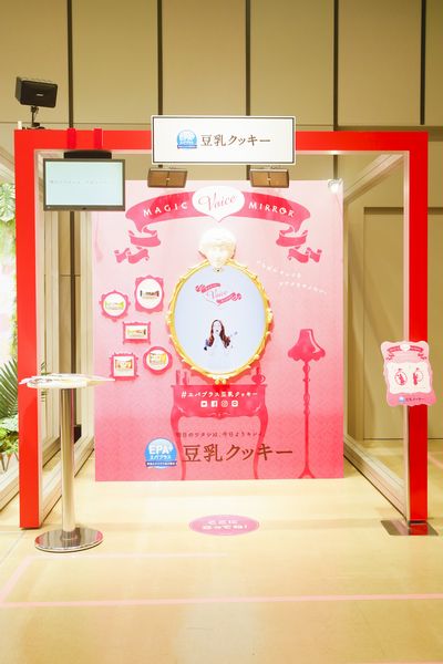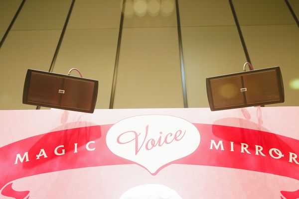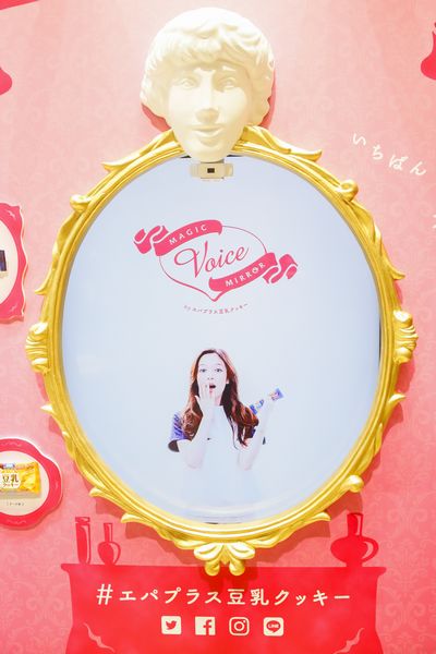 “MAGIC VOICE MIRROR”は、鏡の前に立った女性の容姿をたくさんホメることで、“いちばんキレイな”その人の姿を写し、写真にしてくれる魔法の鏡。超指向性スピーカーが採用されており、耳元で囁くような甘い声で、じっくりとホメてもらえる。