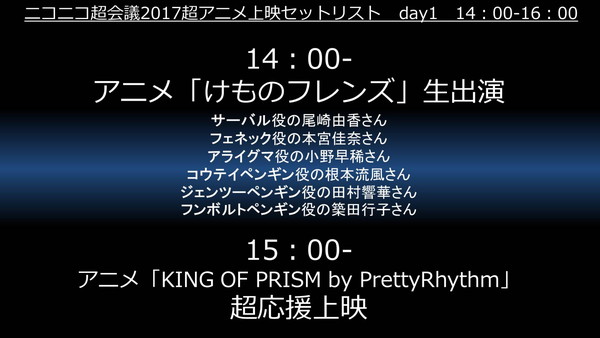 アニメOP映像356作品が“ニコニコ超会議2017”で上映。『けもフレ』生出演や『キンプリ』超応援上映も!