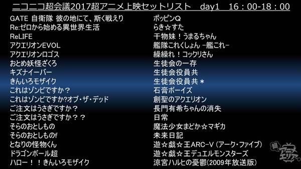 ・“超アニメ上映”(アニメ盛り上げ生放送)@ニコニコ超会議2017[DAY1]