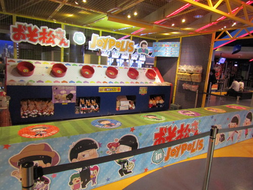 コラボ期間中、スペシャルショーの実施やアトラクションとのコラボ、オリジナル景品が手に入るゲームコーナーの展開や限定グッズの販売などが行われており、ジョイポリスが『おそ松さん』一色に!