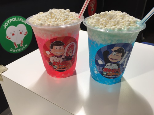 1stFloor“ディッピンドッツアイスクリーム”では、6つ子たちをイメージしたカラフルなフロートアイスが販売。各メニュー注文時に、6つ子がデザインされたノベルティステッカーを1枚ランダムでもらえます。