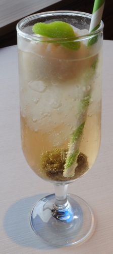 青梅をまるごと使った梅ソーダ。ピーチシャーベットと“松マーク”のグミがトッピングに。