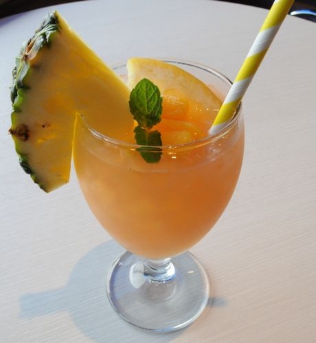 明るく元気になれるジュース。グレープフルーツの他に、パインやマンゴーダイスが入って盛りだくさん。
