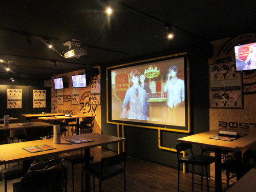 ちょっぴり大人な雰囲気の店内には、『スタマイ』ヒーローたちとのワンシーンが展示されています。明るすぎない光源に、まるで夜のバーにいるかのような気持ちになりますね。