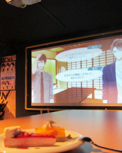 オリジナルストーリーの上映が終わるとお食事タイム。今回は、『孝太郎さんの実験ドリンク』(アルコール)と『セレブなケーキ盛り合わせ』を注文しました! 遊び心が満載のドリンク一式とセレブ感あふれるケーキの組み合わせは、なかなかシュールな光景に……。