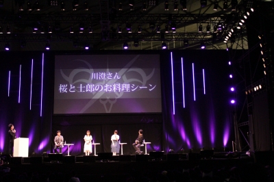 イベントは言峰綺礼の歓迎から開始。杉山紀彰さん(衛宮士郎役)、下屋則子さん(間桐 桜役)、川澄綾子さん(セイバー役)、中田譲治さん(言峰綺礼役)が登壇して、自分の演じるキャラの名台詞で会場を盛り上げました。