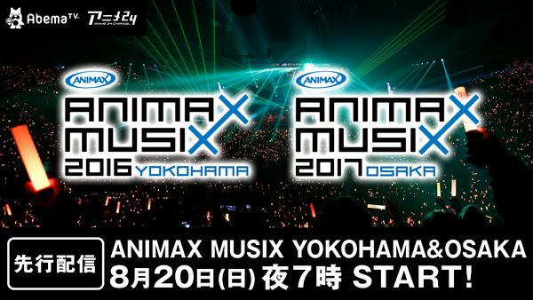 AbemaTVの“アニメ24チャンネル”で、“ANIMAX MUSIX 2016 YOKOHAMA”と“ANIMAX MUSIX 2017 OSAKA”が8月20日19時よりネット初先行放送される。