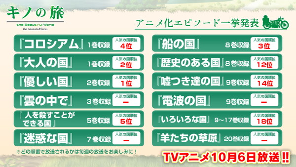 『キノの旅』“優しい国”などアニメ化エピソードが一挙判明!