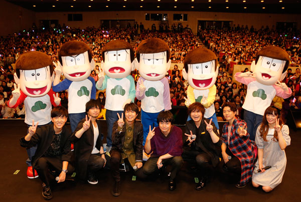 ついに第2期の放送が始まった『おそ松さん』の6つ子+トト子のキャスト陣が集合ということで、ファンが大集結。全国101館の劇場ではライブビューイングも実施され、本会場と合わせて約3万人もの観客がイベントに沸いた。