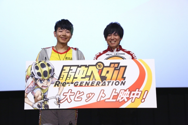 その後もハイテンションな2人のトークがさく裂し、上映劇場で販売されている『弱虫ペダル Re:GENERATION』のパンフレットに載っているポーズを山下さんがステージで再現することになったり、キャスト陣で仲良くギョーザを食べ比べに行った話をしたりなど、映画本編の話にはなかなか辿り着かず、和気あいあいとした仲の良さが伝わるトークで、会場が笑いに包まれる賑やかなイベントとなった。