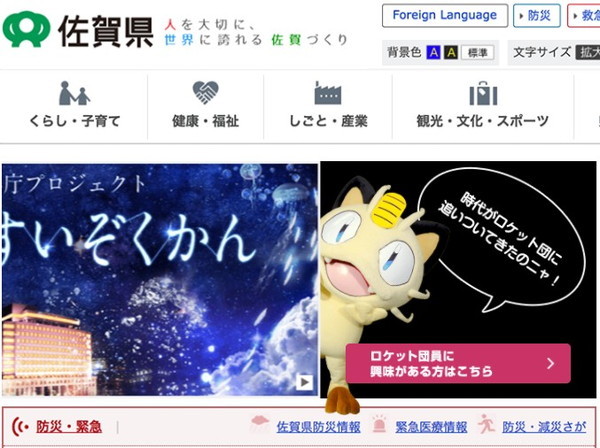 一見、なんの変哲もない県庁公式サイトかと思いきや、突然画面内には ニャースが登場。「時代がロケット団に追い付いてきたニャ!」と、 なんだかうれしそうな様子だ。