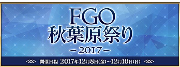 iOS/Android用アプリ『Fate/Grand Order(FGO)』のミニイベント“FGO秋葉原祭り 2017”が、12月8~10日の期間に秋葉原にて開催される。