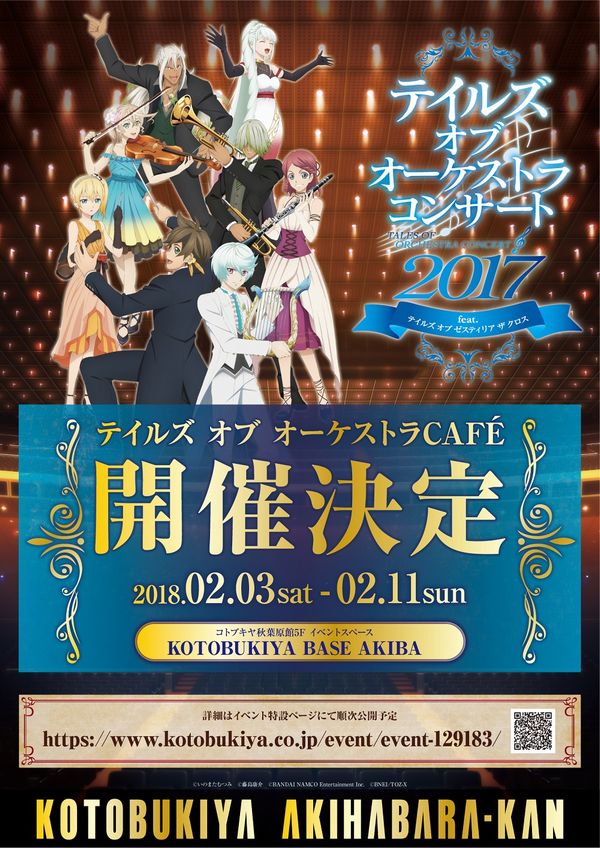 本オーケストラコンサートの演奏を収録したアルバムは、2018年1月31日に発売予定だ(価格:3,200円/税込)。『風ノ唄』の合唱も収録されるのでぜひチェックしてほしい。また2018年2月3日~11日の期間には、コトブキヤ秋葉原館5Fイベントスペースにて“テイルズ オブ オーケストラ Café”の開催も予定されている。