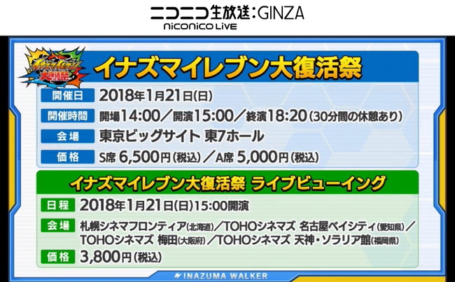 “イナズマイレブン大復活祭”が2018年1月21日に東京ビッグサイトにて開催される。
