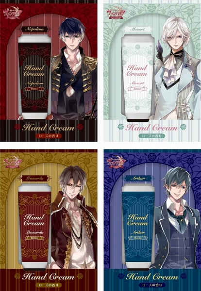 本イベントでは、イケメンたちの美麗なイラストを使用したハート型キャラバッジやシックなデザインのモチーフバッグをはじめ、普段使いにもバッチリなスカーフやハンドクリームなどの、新商品が発売。さらにナポレオン、モーツァルト、レオナルド・ダ・ヴィンチが描かれた完全受注生産商品である複製原画が店頭で一足早く展示が行われる。