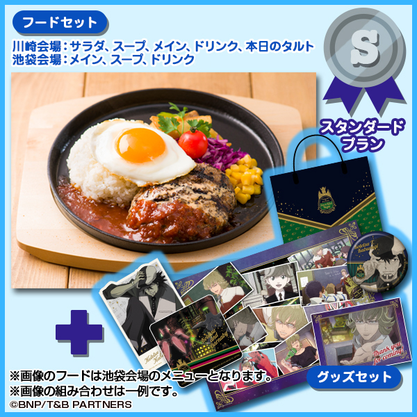 指定の日時に実施店舗へ来店。マイページの‟入店用二次元コード”を表示してスタッフに提示しよう(マイページが表示できるスマートフォン持参)。席案内後、各プランに付属のグッズセットを受け取り、フードのメインメニューを選ぶ。