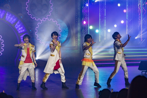 リジェフェスラストの演目はライブコーナー! トップバッターの『スタレボ☆彡 88星座のアイドル革命』はPURA.netが『シャッターチャンス!』を披露すると、2曲目『Horoscope』ではグロリアスが客席から乱入するサプライズで会場を驚かせます。