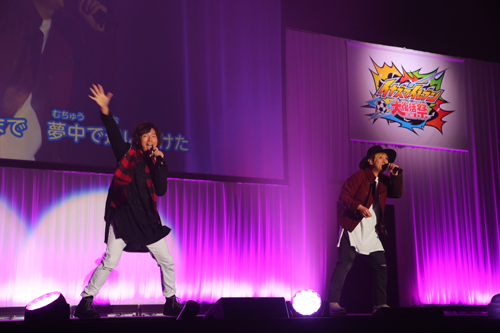 『イナズマイレブン』第55~67話のOPテーマ『つながリーヨ』、第88~107話のOPテーマ『GOODキター!』で、会場の熱を一気に高めていく。おなじみのキャラクターたちも登場し客席の間を通るなど、ファン大興奮の演出に。