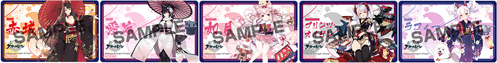 各店舗開催期間中、『アズールレーン』関連商品を購入・予約内金2,000円ごとに、特典<ICカードステッカー(全5種)>からランダムで1枚もらえる。