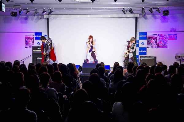 イベントの最後には、メンバー3人がキャラクター衣装のままでこの日リリースとなった新曲『D×D×D』を披露。MVそのまま、アニメのキャラクターが実写化されたかの様子に場内からは悲鳴も上がるほど。