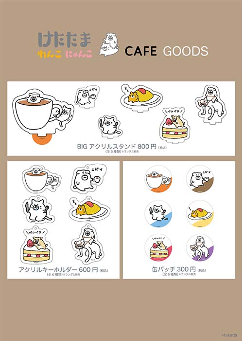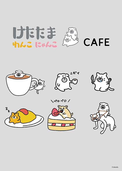 コラボカフェでは、『けたたまわんこ&にゃんこ』に登場するキャラクターをイメージしたフード・ドリンクが用意されているほか、グッズなども販売されている。イラストは原作者であるたかださんの描きおろし!