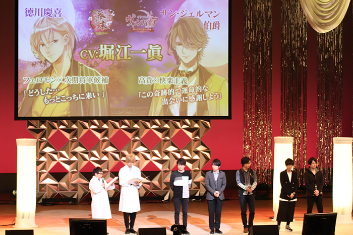 その後は、『イケメンシリーズ』から新情報が続々と知らされた。『イケメン戦国◆時をかける恋』のビジュアルファンブックの発売や、『イケメン革命◆アリスと恋の魔法』のカイル=アッシュ本編ストーリー配信日決定、『イケメンヴァンパイア◆偉人たちと恋の誘惑』のフィンセントのシチュエーションCDの発売など、新情報が多数発表され、大きな歓声が湧き上がった。