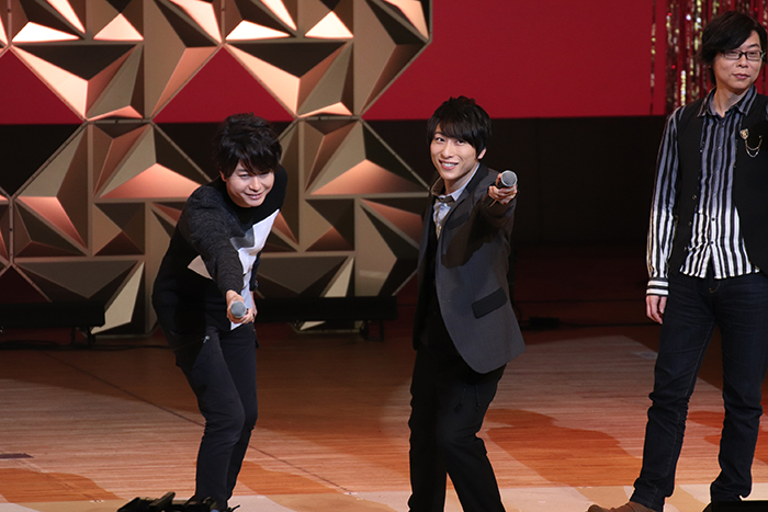 イベントがスタートすると、イケメン研究所所長による「みんなイケメンは好きですかー?」、「大好きー!!」というファンとのコールアンドレスポンスを皮切りに、「イケメン○○は好きですか?」、「おー!」と各作品ごとの掛け合い合戦も始まり、早くも会場は熱気と歓声に包まれた。