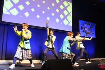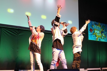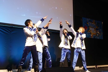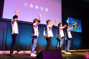 1番手は“SP!CA”。未来へ連れ出してくれそうな力強くも爽やかな『Special Nu World』、5人のフォーメーションダンスがクールに決まった『SP!CA ~Blue Light Stars~』を披露。ステージ間のトークでは、本日のステ―ジのために5人で焼肉に行ったことが明かされるなど5人の絆が垣間見えるライブとなった。