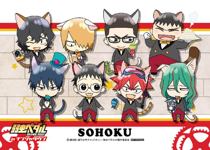 期間は2016年2月5日(金)から4月10日(日)で、これまでナンジャタウンで開催した『弱ペダ』イベントすべての総集編ともいえる内容となっており、歴代登場した人気メニューや景品などが再登場するほか、新メニューや新規描き下ろしイラストによるオリジナルグッズや景品なども登場するとのこと。