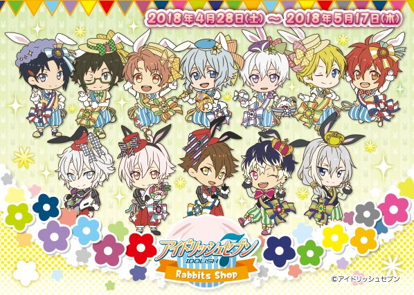 “アイドリッシュセブン Rabbits Shop”では、うさみみがかわいいイースター姿のメンバーたちが、ちびキャラに! かわいさが増したメンバーたちの新商品が続々登場する。