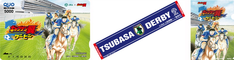 日本ダービー(GⅠ)当日、“キャプテン翼ダービーイベント@渋谷MODI”で配布されるリーフレット、もしくは特設WEBサイト内“必殺シュートダービー”のプレイ画面を、東京競馬場で5月27日に購入した“第85回日本ダービー(GⅠ)”の勝馬投票券500円分以上(合算可)と共に提示すると、抽選でオリジナルグッズがもらえる。