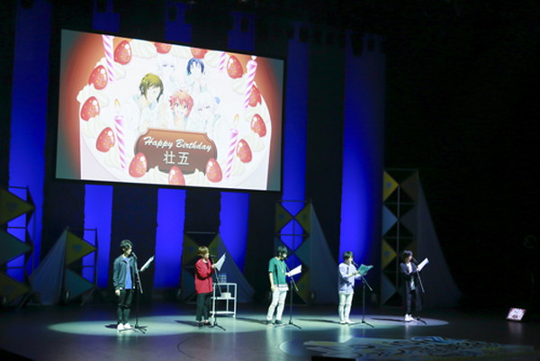お祝いの準備をする一織・大和・陸のシーンでは、準備のために天に壮五を足止めするよう指示する大和や、いつものドジっ子ぶりで飲み物などをひっくり返してしまう陸、それを冷静にフォローする一織のコミカルなやり取りが展開された。一方の、壮五が楽屋に行くまでの時間を稼ぐ天は、勢いで壮五に無茶振りをしてしまうが、真面目過ぎる壮五は一生懸命その無茶振りに応えようとするなど5人の関係性が存分に描かれ、ファンには堪らない内容となっていた。また、ペンライトを誕生日ケーキのロウソクに見立てて、壮五が息で吹き消す演出がなされ、会場が一体となって壮五をお祝いするという、思い出に残る素敵な朗読劇となった。