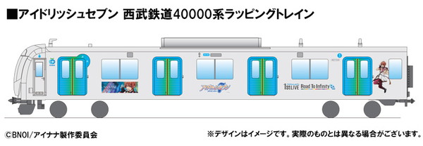 これは、アイドリッシュセブンの初ライブ“1st LIVE 「Road To Infinity」”に参加されるお客さま向けの特別列車で、初ライブを記念して、当社の最新型車両40000系に初めてラッピングを施し運行。会場までの快適な旅と、プレミアムトレインならではの『アイナナ』の世界観が楽しめる。さらに、参加者限定グッズのプレミアムトレインパック オリジナルパスケース(非売品)と、乗車日当日限定で利用できる西武線1日フリーきっぷを含む。募集定員は2日間あわせて3運行計960名で、応募者多数の場合は抽選販売となる。