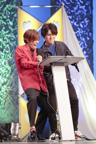 続いて、MVのコーナーが終わると、ファン待望のライブコーナーへ。赤と青の色違いのチェックのジャケットを着た増田さんと小野さんが「Fly away!」を披露。二人が腕を組むダンスもあり、ファンは大盛り上がりでペンライトを振り歓声を送っていた。ライブの興奮冷めやらぬ中、残りのキャスト3名が再び登場し、様々な情報を告知。