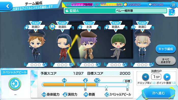 プロデューサーであるあなたが、撮影中のアイドルたちにエールを届けることも。たくさんのエールを届けることができると、ドラマの結末に変化が……? また、最後にはプレイ結果として、各アイドルの演技力評価が発表。こちらで獲得したポイントは、ゲーム内で重要な意味を持つ“アイドルランキング”に反映される。