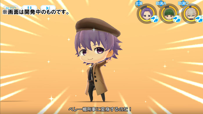 公開生放送では、スマホゲーム内の“アイドル活動”のひとつ、18 人の演技力を鍛える“ドラマ出演”のお仕事が初公開。複数ある出演可能なドラマの中から今回は“ベレー帽刑事(デカ)”が紹介された。