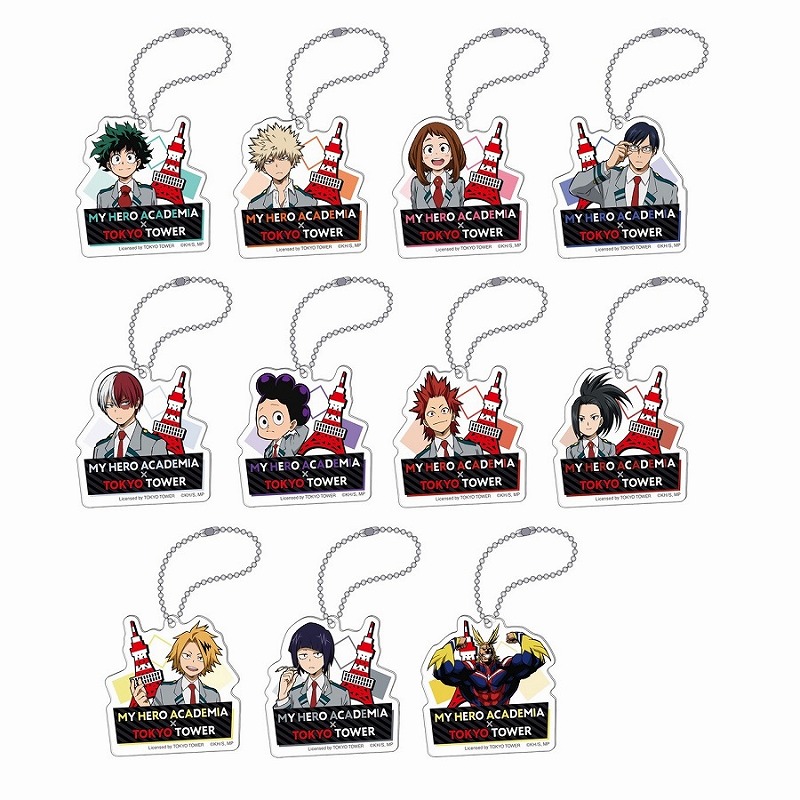 劇場版の舞台となる“I・アイランド”にそびえ立つ200階建てのシンボルタワー。そのタワーを共通点に、日本全国のタワーとコラボを行っている第3弾として、劇場版のメインビジュアルのシンボルタワーが東京タワーに。本ビジュアルを使用したクリアファイルが限定グッズとして発売中。また緑谷出久をはじめ、各キャラクターと東京タワーがデザインされたトレーディングのアクリルキーホルダーコレクションも登場。